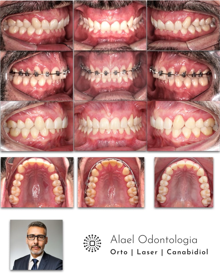 A evolução clínica demonstrou correção da sobremordida, readequação do posicionamento dos dentes anteriores e restabelecimento de uma oclusão funcionalmente equilibrada, com melhora estética e estabilidade oclusal.